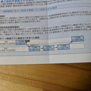 契約みると3等級ダウンがあった場合は、事故有の安い割引が3年続き、その後、無事故なら今と同じ等級に戻る。