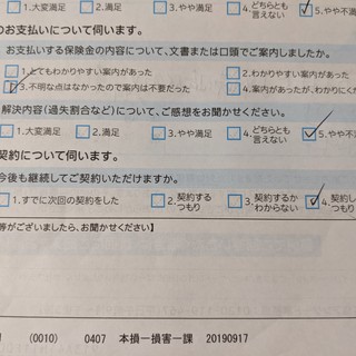 そして、保険会社のアンケートも届く。
