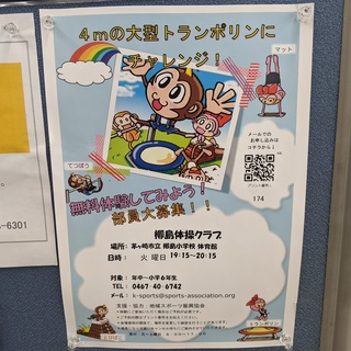 本日見つけた茅ヶ崎のトランポリン教室。サッカーに続けて習わせる手もありか。