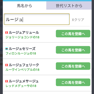 とにかくクリックして、レスポンシブデザインにもなっていない画面を見ると、愛馬の馬名がコンフィテオールとのこと。