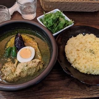 その中でもパクチーグリーンのチキンカレーを注文!これがうまい!